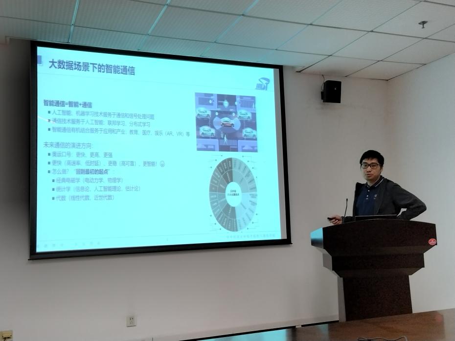 万凯就智能通信方向进行讲解。万凯讲述了大数据场景下的智能通信,软件定义无线电、认知无线电与智能无线电,通信技能与人工智能应用,并介绍了智能通信课程群和智能通信科研团队的相关情况。