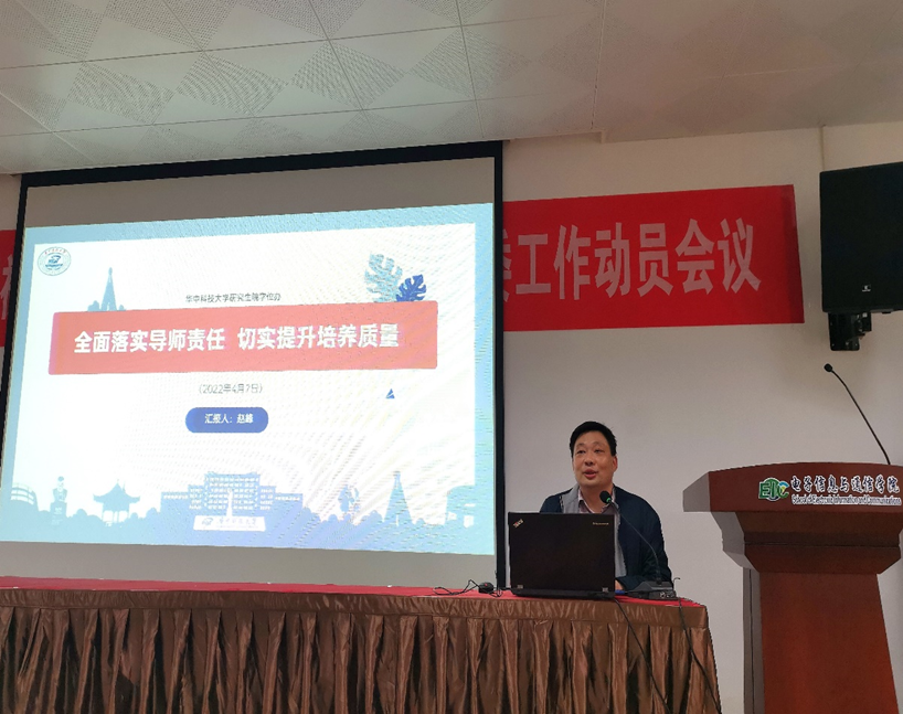 研究生院副院长赵峰作“全面落实导师责任 切实提升培养质量 ”的主题报告。他介绍了近年来教育部、湖北省博士、硕士学位论文抽检情况,列举了抽检中问题论文存在的多项不足。从国家教育导向、导师权利与职责、导师选聘条件及流程、导师培训与考核、导师变更等多个方面全面解读了《华中科技大学研究生导师岗位管理办法》,并为导师们介绍我校学位授予流程、时间节点和注意事项。他强调,研究生导师必须严格把关审核每一篇论文,同时注意剖析当代研究生群体的心理变化,保持良好的导学关系。