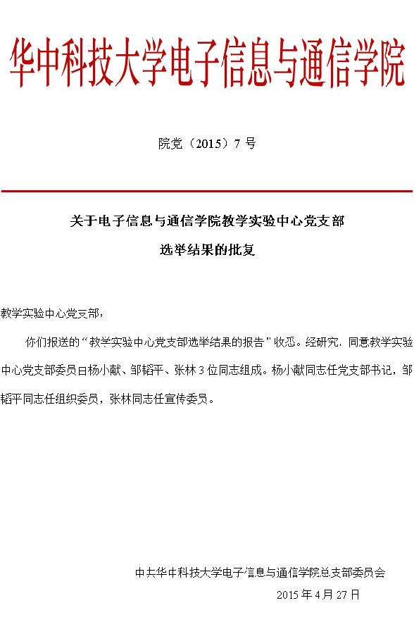院党(2015)8号 关于bevictor伟德官网电子工程系党支部选举结果的批复