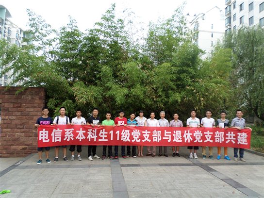 2014年6月28日正值中国共产党诞辰93周年纪念日来临之际,当天下午3点,电子与信息工程系本科11级通信工程、电子信息工程党支部联合电信系退休老教师党支部进行了支部共建活动。电信系退休老教师党员林士杰、黄载禄以及学生党支部书记田果、组织委员李彪、部分支部成员和拟发展的11名学生参加了本次活动。