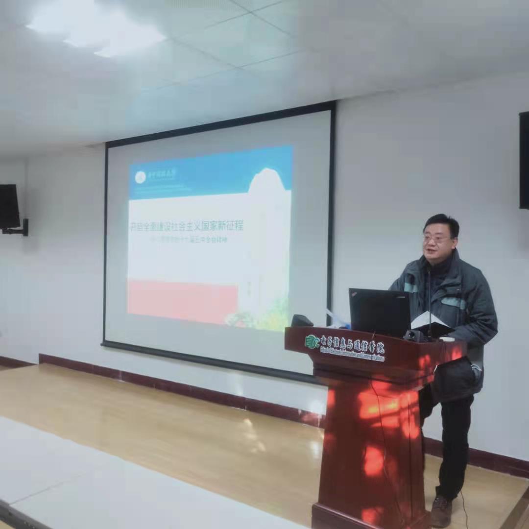 2020年12月31日,bevictor伟德官网在学院报告厅举行学习贯彻十九届五中全会精神宣讲报告会。学校宣讲团成员、新闻与信息传播学院院长张明新教授以《开启全面建设社会主义国家新征程——学习贯彻党的十九届五中全会精神》为题,为全院教职工作宣讲报告。报告会由学院党委书记郑小建主持。