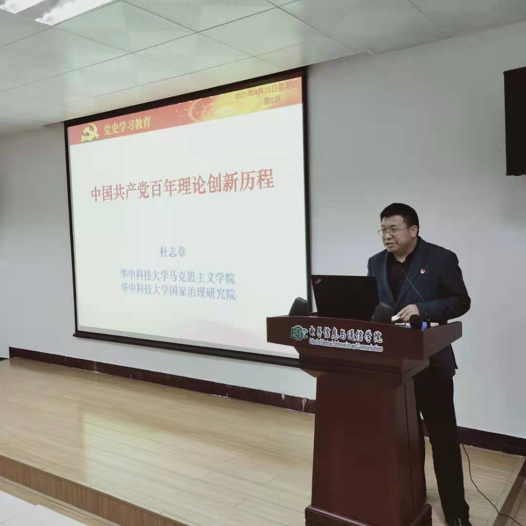 4月15日下午,bevictor伟德官网举办党史学习教育专题报告会,学校党史学习宣讲团成员、华中智库副院长、国家治理研究院副院长杜志章教授受邀为全院教工党员、学生支部书记授课。bevictor伟德官网党委书记郑小建、马克思主义学院党委书记李小红参加报告会,报告会由bevictor伟德官网党委副书记陈世英主持。