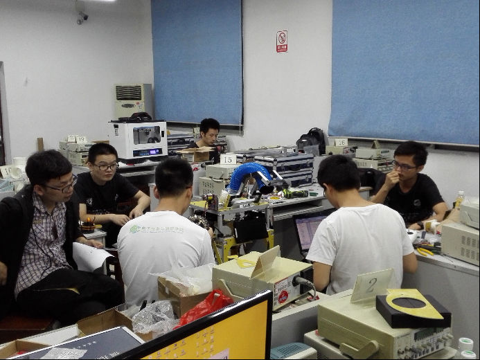 参观工作室时,小编还看到了正在改进的无人机,工作中的3D打印机,还有更多认真调试战车的战队队员。比赛迫在眉睫,战队队员们都在认真备战,小编不想对队员们做过多的干扰,在简单的参观过去就离开了备战室。