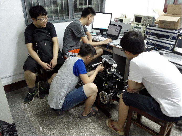 队员们正在调试“英雄车”