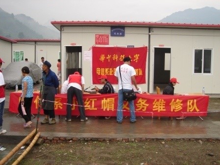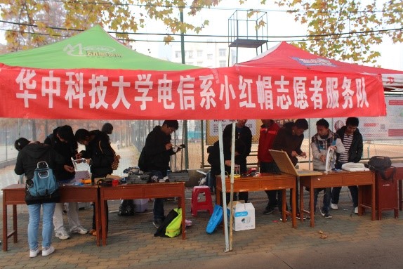 有这样一支队伍,他们成立于二十世纪九十年代初,一直延续至今,从初生到逐渐成熟,已有24个春秋;有这样一支队伍,他们秉着“用知识回报社会”的宗旨,发扬“奉献知识,服务社会”的优良品质,至今已经活动了100余次义务维修电器6000多件,足迹遍及校内、武汉中南商场、长动集团、武钢、宜昌葛洲坝、贵州遵义,四川地震重灾区彭州以及长征路上的多处革命老区,在全社会引起了强烈的反响;有这样一支队伍,随着时代在变,人们理念在变,环境在变,他们却克服一次又一次的困难,将志愿精神带向社会,用只是回报社会。他们就是电子与信息工程系小红帽义务维修队(以下简称小红帽)。