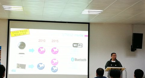 之后,来自st公司的Felix针对st的产品与我们进行了分享。他从公司的起源、组成讲起,到产品发展、未来展望。他主要介绍了STM32平台在无人机、可穿戴式应用及无线传输等领域提高设计效率的优势,以及其在设计开发方面的快捷简单。又针对其在生态系统方面的优势、进入大学协助在校大学生创新实践以及公司的未来愿景进行了介绍。