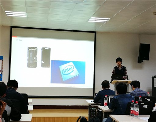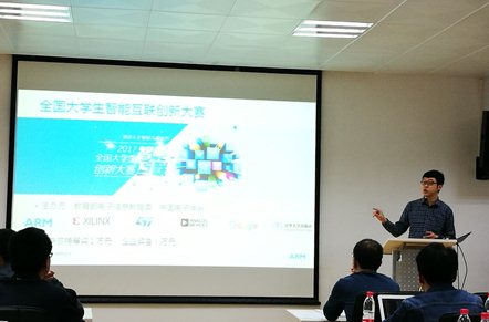 接着,ARM公司的雷磊为我们做了赛事讲解,包括获奖证书、奖项设置、参赛要求、赛事项目等。接下来他介绍了ARM互联及互联网的关系,以及ARM公司的产品、物联网设备开发、mbed平台、无人机等方面的发展与改进。主要详细介绍了mbed平台的原理和使用,他还建议参赛同学使用类似mbed此类经过验证的安全可靠的智能互联平台进行开发。最后预祝参赛同学取得优异成绩。 并解答了几个同学提出的问题,期间,曾喻江老师协助对同学提出的问题进行了补充说明。