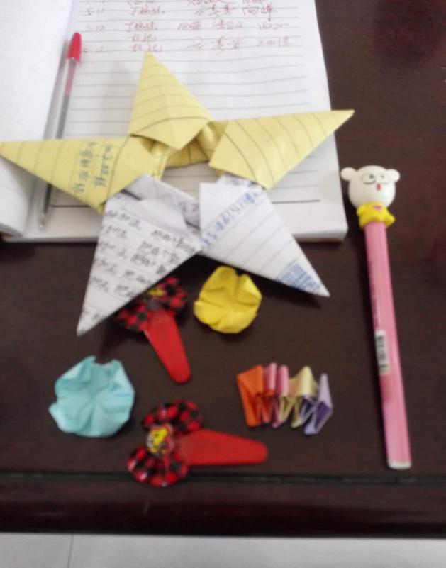 小朋友们亲手叠的小卡片,心爱的发卡和可爱的文具