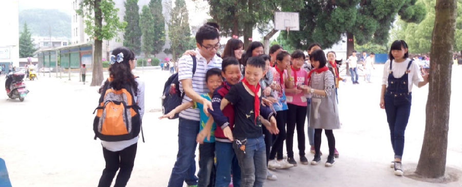 考虑到教室的局限,我们也开展了“走入操场,融入到学生中去”,更进一步的与同学们互动交流。
