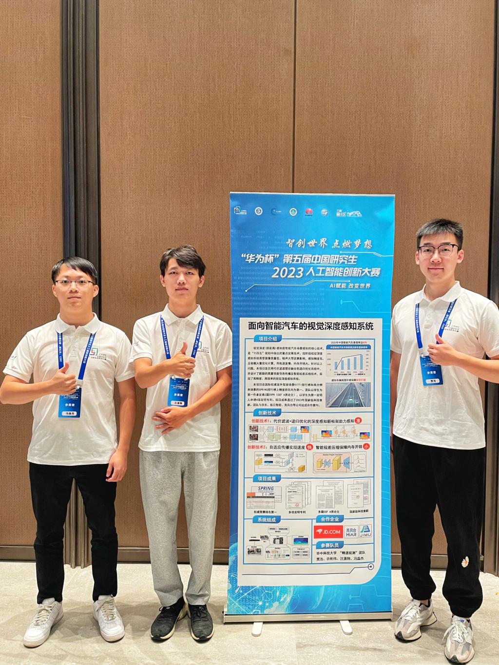 2023922日至25日,“华为杯”第五届中国研究生人工智能创新大赛总决赛在山西太原举行,由杨欣教授、冯镔副教授指导的“精速视测”团队(学生成员:贾浩、许刚伟、汪潇翔、冯淼杰)以项目《面向智能汽车的视觉深度感知系统》荣获全国一等奖,实现我院在该项赛事成绩新的突破。同时,我校获得大赛优秀组织奖,指导老师杨欣、冯镔获评“优秀指导教师奖”。