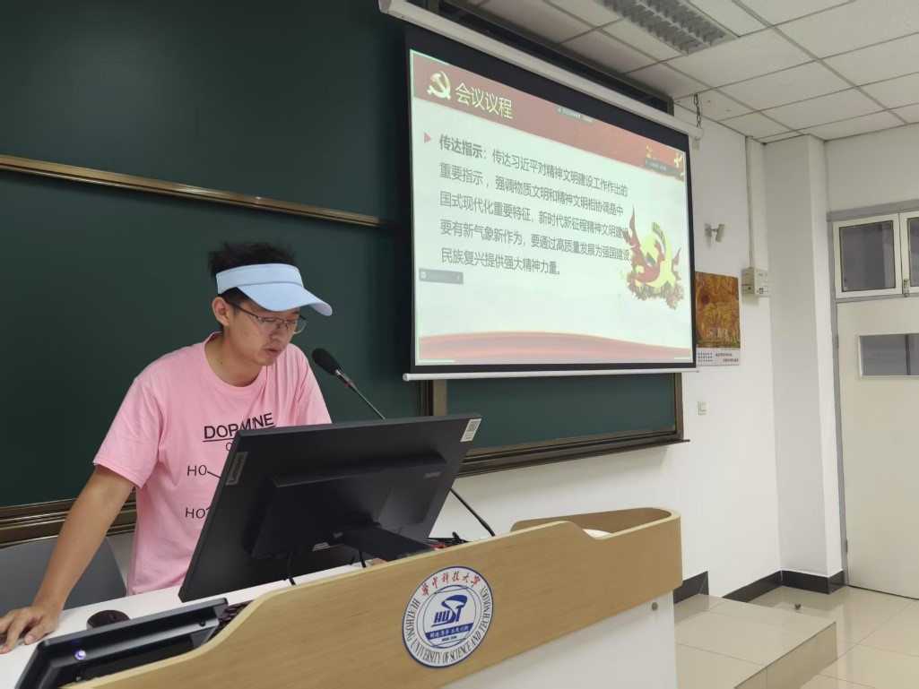 活动第一项,第三党小组的董季坤同学为大家带来了一场以 “全国精神文明建设表彰大会” 为主题的微党课。课上,他深入解读全国精神文明建设表彰大会要点,传达习近平总书记重要指示,阐述新时代精神文明建设的新要求。通过鲜活案例,详述先进典型示范作用及创建活动成果,助力组员深刻领会,为推动精神文明建设凝聚力量。开创中华民族更加灿烂的未来的决心!