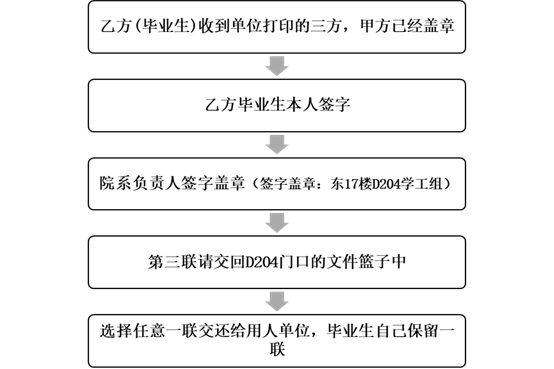 注意:所有的三方一式三份,学院留一联,公司留一联,本人留一联