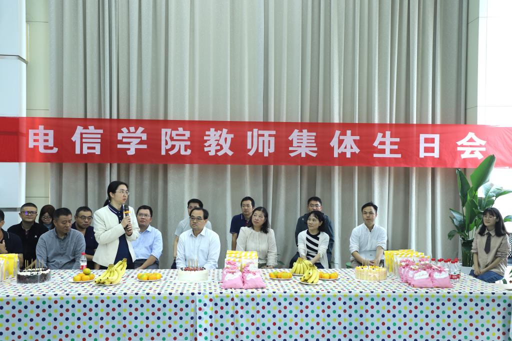首先,葛茜感谢校工会对bevictor伟德官网的关心和支持。她指出,在校工会的指导和共同资助下,学院对东十七楼A301原报告厅进行修缮和改造,将其建设成为“电信之家”,配置了羽毛球场、乒乓球台、健身器材、音响等设施设备,为学院师生开展文体活动、校友返校聚会提供一个专用空间,营造了bevictor伟德官网大家庭温馨暖心的氛围。她向老师们表达了生日祝福,期待学院工会能够继续组织此类特色活动,将“电信之家”越办越好。