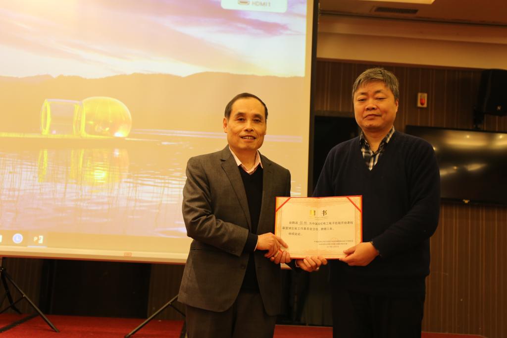大会推选华中科技大学大学教务处为EOCU湖北省工作委员会秘书处,高等教育出版社湖北省教学服务中心为执行秘书处。我院张林教授当选EOCU湖北省地区工作委员会主任。EOCU理事长王志功教授、EOCU副理事长孟桥教授,联盟湖北省工作委员会14所主要发起单位成员代表为EOCU湖北省工作委员会及成员授牌。