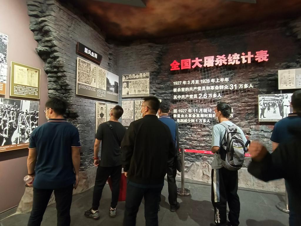 展厅中展示了周恩来、朱德、贺龙等人当年的旧物,以及南昌起义时期使用过的各种文物。旧物的陈列,让历史顿时从讲解员的话语中进一步鲜活起来。透过展柜中破旧的草鞋、褪色的军装……大家深切地体会到革命先辈们当时革命条件的艰难、革命形势的严峻。先辈们筚路蓝缕,在探索中前进,为了革命的胜利付出了艰苦卓绝的努力。
