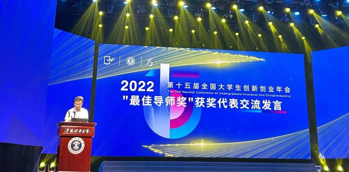 5月13-14日,第十五届全国大学生创新创业年会(简称“国创年会”)在中国矿业大学南湖校区举办。尹海帆老师获评“国创计划”十五周年荣誉奖项“最佳导师奖”,并作大会代表发言;李渝舟老师获评“优秀指导教师”;本科生大创项目获评“我最喜爱的项目”;2017级本科生、2021级硕士生王锴入选“双创人物”。