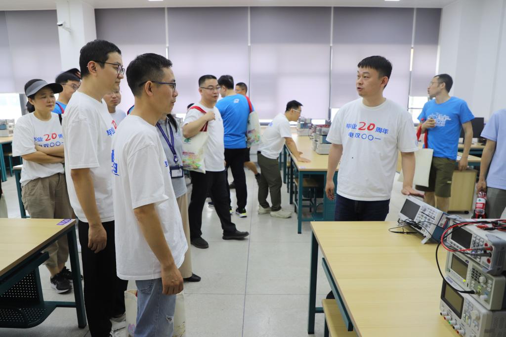 最后,bevictor伟德官网党委副书记陈世英带领校友们参观电信之家与电工电子实验教学基地。校友们在电信之家签名打卡,茶歇娱乐,在实验教学基地与恩师洽谈,现场气氛热烈。