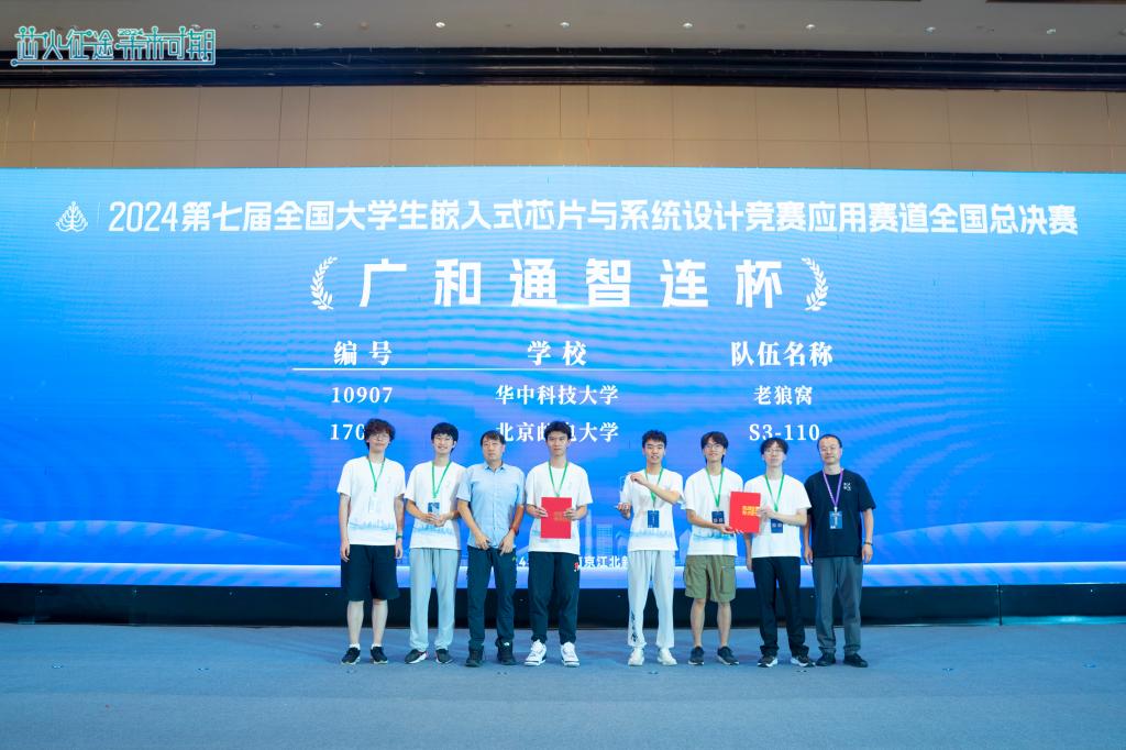 大赛全国总决赛于8月10日至13日在南京江北新区集成电路培训基地进行,参赛队伍现场进行实物作品演示并答辩。经过两天的激烈角逐,大赛最终评出一等奖98个、二等奖196个、三等奖354个。此外,全体专家组在一等奖获奖队伍中额外评选出最佳创意奖2个,最佳工程奖2个,以及企业杯奖项12个。我校在总决赛中获得国家一等奖5个、国家二等奖3个、国家三等奖6个的历史最好成绩,国家一等奖数量并列全国第一,其中“老狼窝”队获得“广和通智连杯”。获奖队员来自电信、集成、人工智能、计算机、光电、机械、未来技术以及生命学院共42人,其中bevictor伟德官网有19人,占比45.2%。