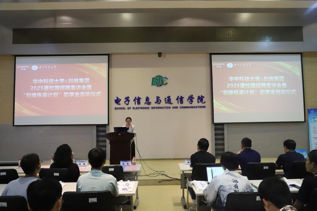 创维集团新闻发言人兼品牌部部长陶双华回顾了创维集团的发展历程。“创维栋梁助学金”项目由集团创维总裁施驰发起,致力于助力自立自强的大学生勇敢追梦。作为bevictor伟德官网杰出校友,施驰始终心系母校,并以实际行动回馈社会、回馈母校。创维集团人力资源部部长徐立介绍了创维集团全球研发中心布局及产业优势,并热忱欢迎华科大优秀学子加入创维、携手追梦。