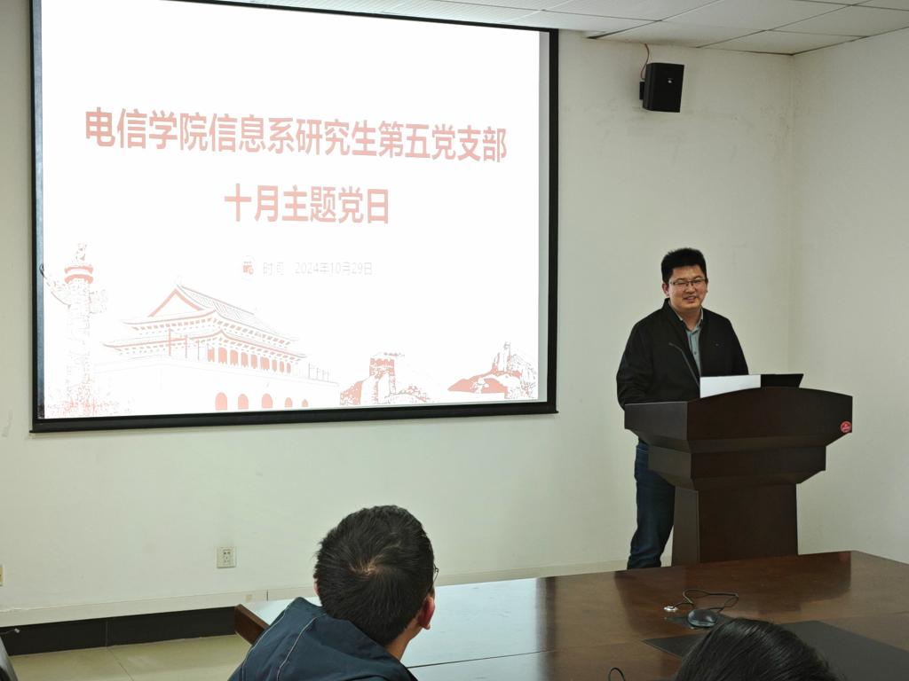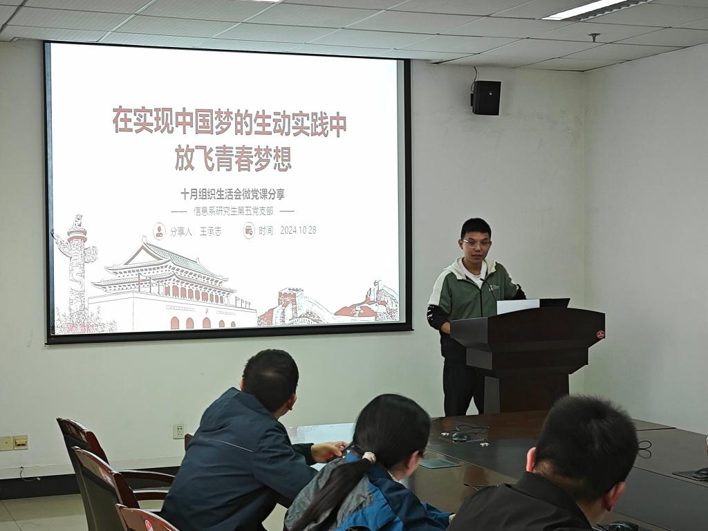 10月29日下午,bevictor伟德官网党委书记葛茜参加信息系研究生第五党支部主题党日活动并讲授党课,学院党委副书记陈世英、辅导员史师帅,支部全体党员及入党积极分子参加。