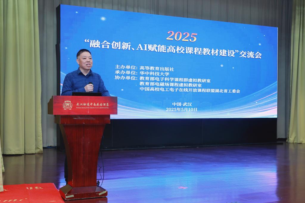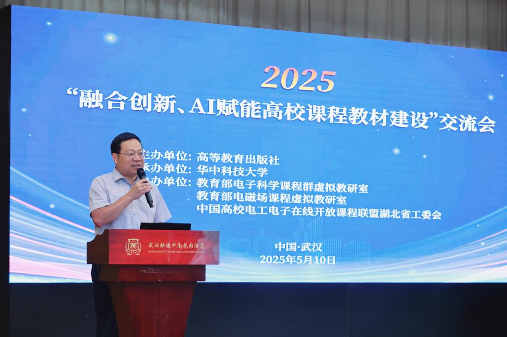 2025年5月10日,由高等教育出版社主办、华中科技大学承办的“2025‘融合创新、AI赋能高校课程教材建设’交流会”在武汉融通中南花园酒店圆满落幕。教育部电子科学课程群虚拟教研室、电磁场课程虚拟教研室及中国高校电工电子在线开放课程联盟湖北省地区工作委员会协办本次会议。会议聚焦人工智能技术赋能教育数字化改革,吸引了全国高校电类专业院系领导、教学负责人及骨干教师等百余名专家学者齐聚一堂,共探AI时代课程教材建设新范式。