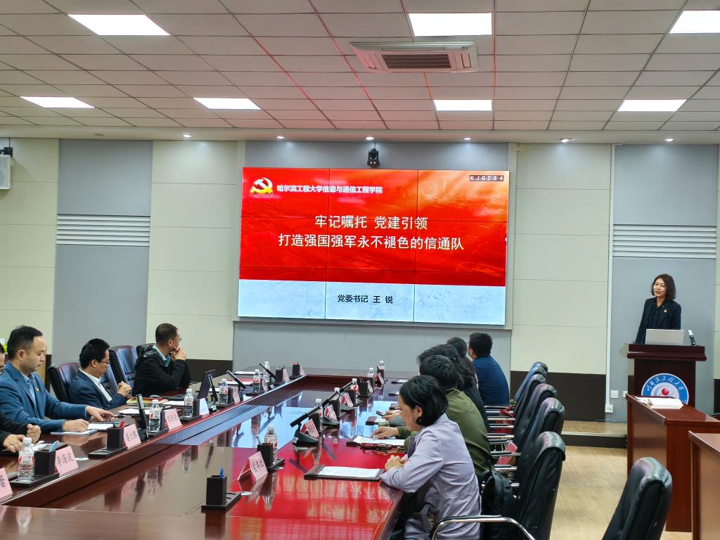 哈尔滨工程大学信通学院党委书记王锐对bevictor伟德官网党委书记葛茜带领教学实验中心党支部的党员一行到访信通学院表示热烈欢迎,并以“牢记嘱托 党建引领 打造强国强军永不褪色的信通队”为题,介绍了信通学院传承“哈军工精神”,贯彻落实习近平总书记视察学校重要讲话精神的党建工作举措和教学、科研、人才培养等工作取得的成效。
