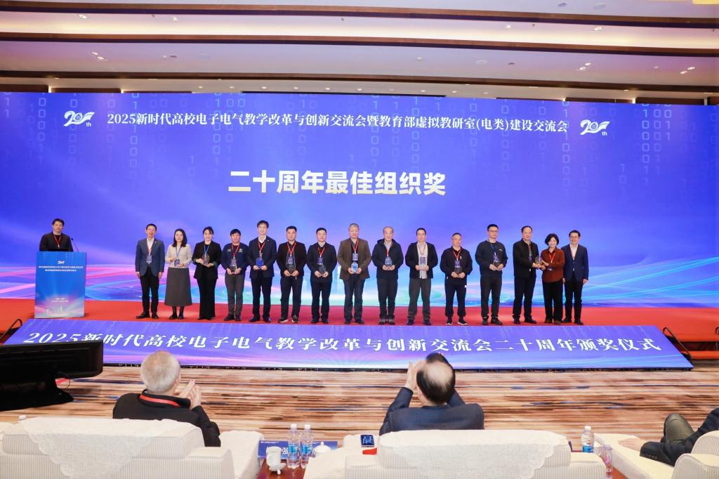 在交流会成功举办的二十周年之际,特举办“新时代高校电子电气教学改革与创新交流会二十周年颁奖仪式”,以向历年倾力支持交流会举办的院校和老师表达最诚挚的谢意。颁奖仪式共设有“最佳贡献奖”“最佳参与奖”和“最佳组织奖”三项奖项。中国科学院院士、教育部高等学校电子信息类专业教学指导委员会主任委员、西安电子科技大学郝跃教授和教育部高等学校电气类专业教学指导委员会主任委员、南京师范大学胡敏强教授为各位专家颁发“最佳贡献奖”。