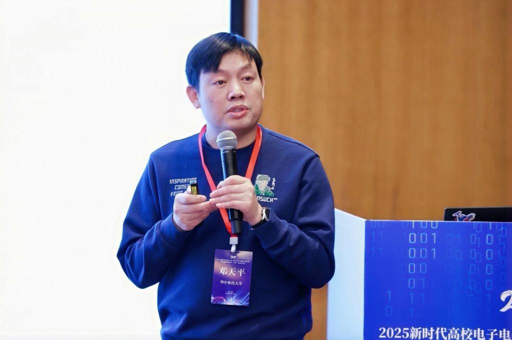 本次交流会共设有四个平行论坛,分别聚焦电子电气类基础课和专业课的课程与教材建设,以及电子电气类虚拟教研室的建设与实践等主题,共计22位专家在对应领域分享了实践经验与成果。我院教学实验中心主任邓天平教授在平行论坛I做了《课时压缩条件下,如何进行模电课程教学?》的分享报告。