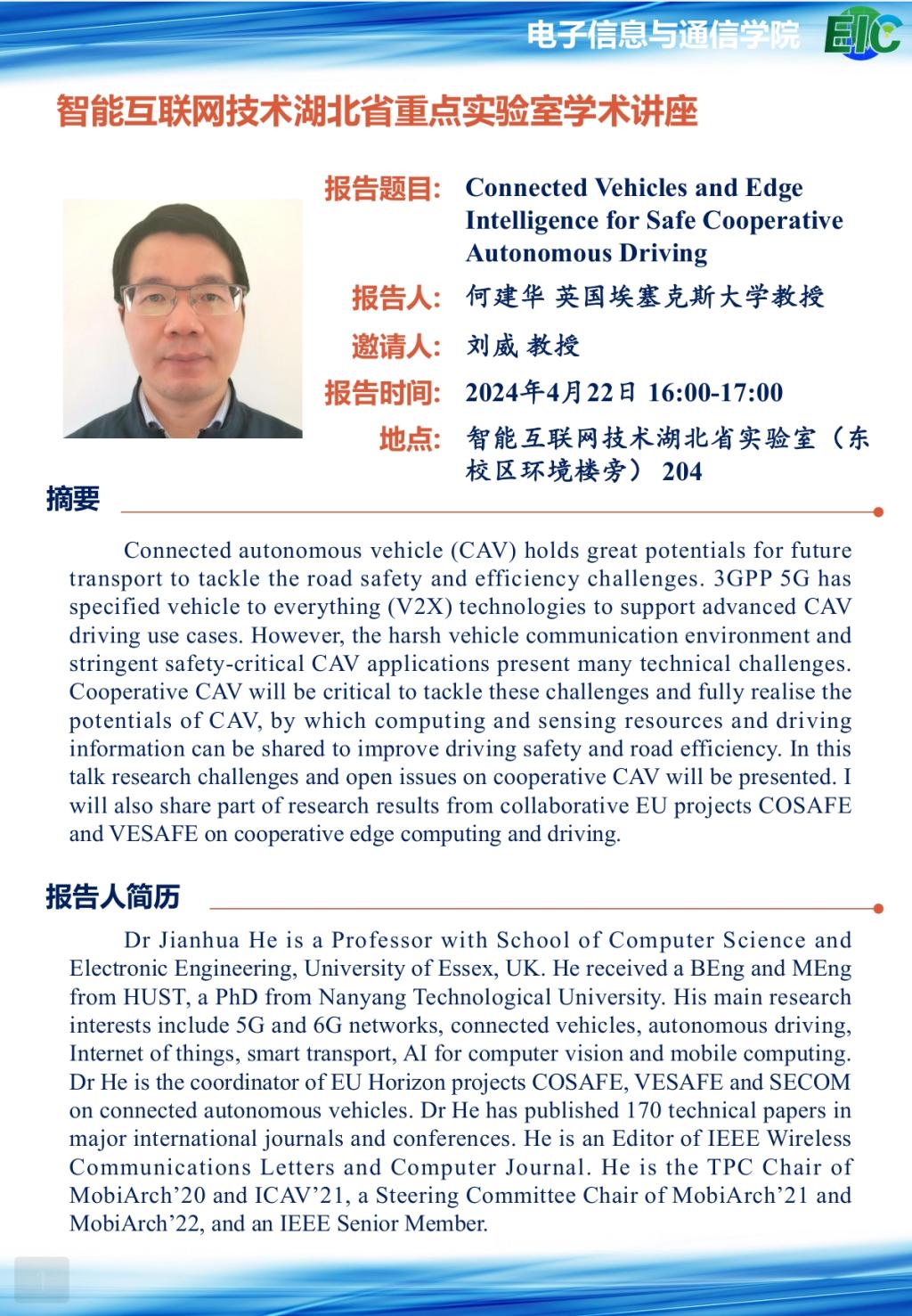 英国埃塞克斯大学何建华教授学术讲座