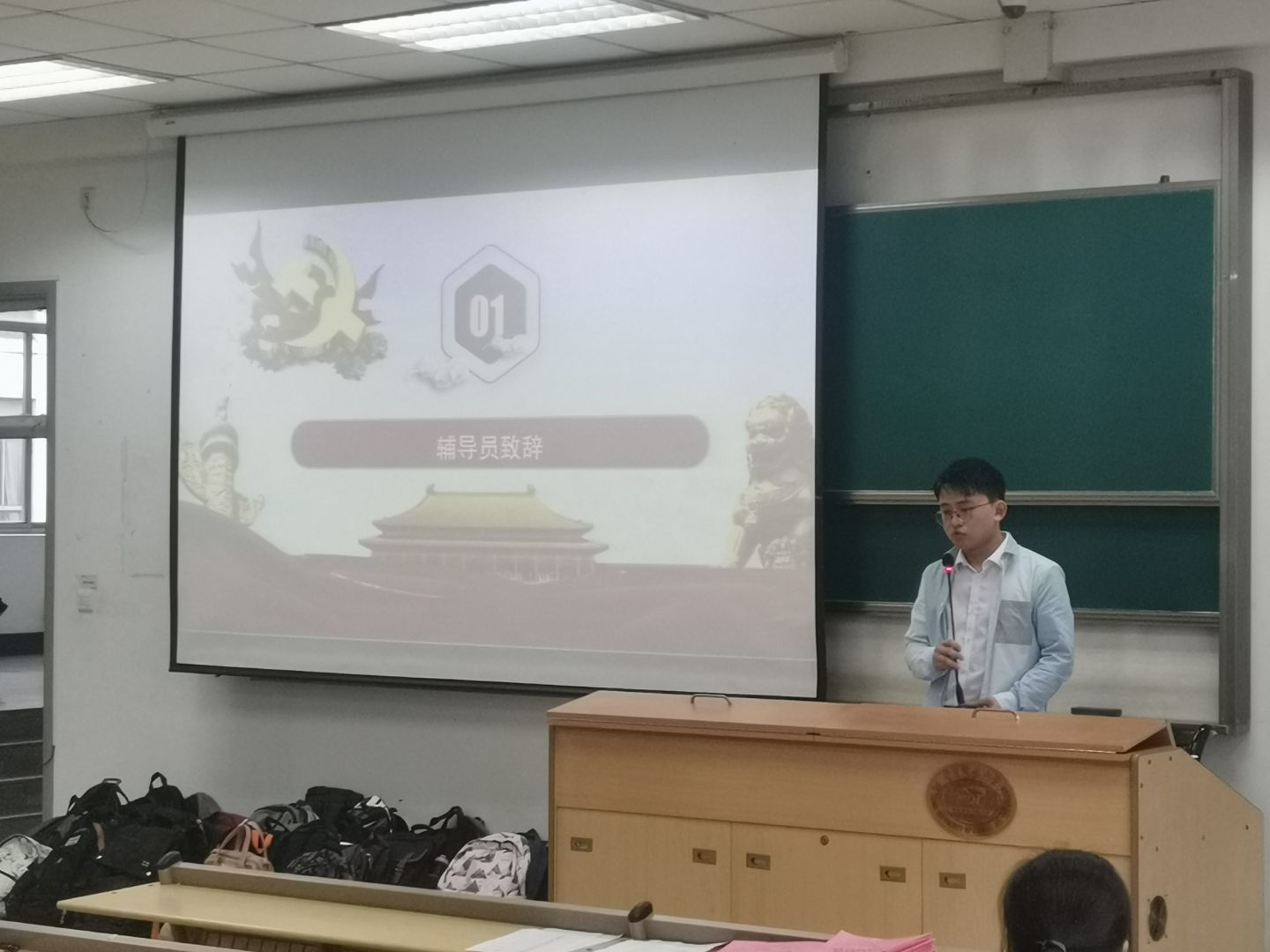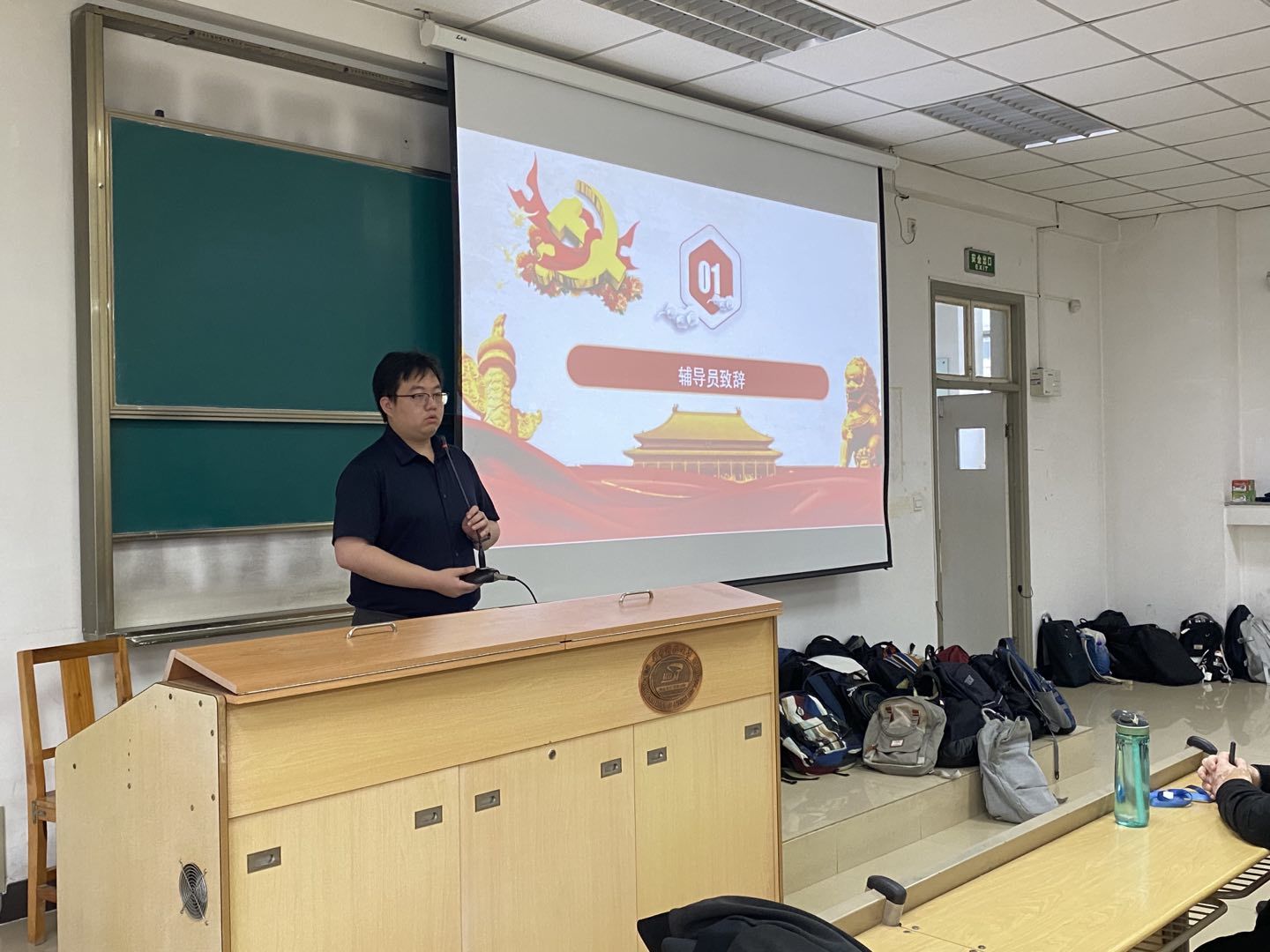 测试开始前,党建辅导员刘程和辅导员张焕宸发表讲话。